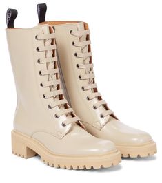 Must assoluto dellโautunno inverno 2121 2022 sono i modelli a gambale alto. I combat boots stringati in pelle nera con suola chunky conquistano la scena tra gli anfibi alti, assolutamente perfetti per lโinverno piรน freddo.