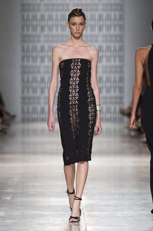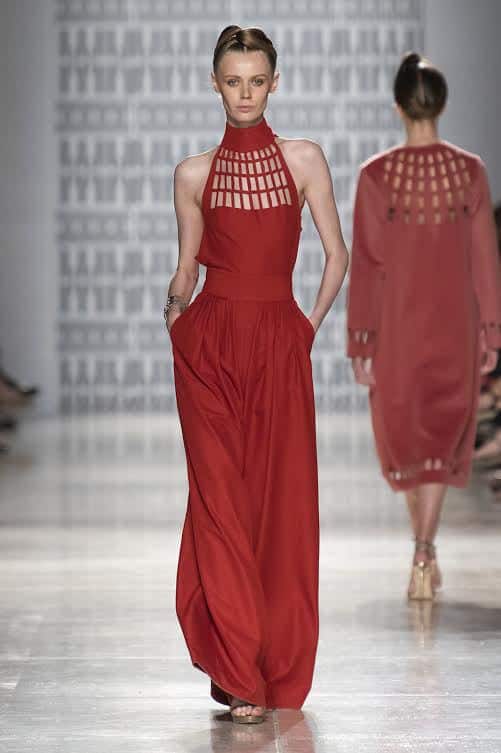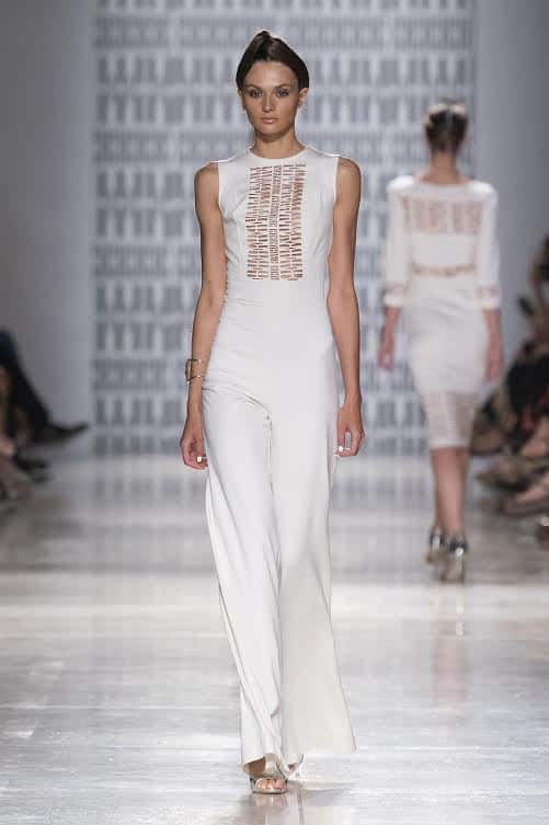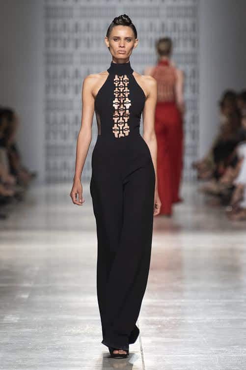 Come sempre di forte impronta architettonica, ma anche di estrema eleganza e sensualità, i capispalla e le tute, oltre ad abiti da cocktail e da grande soirée.