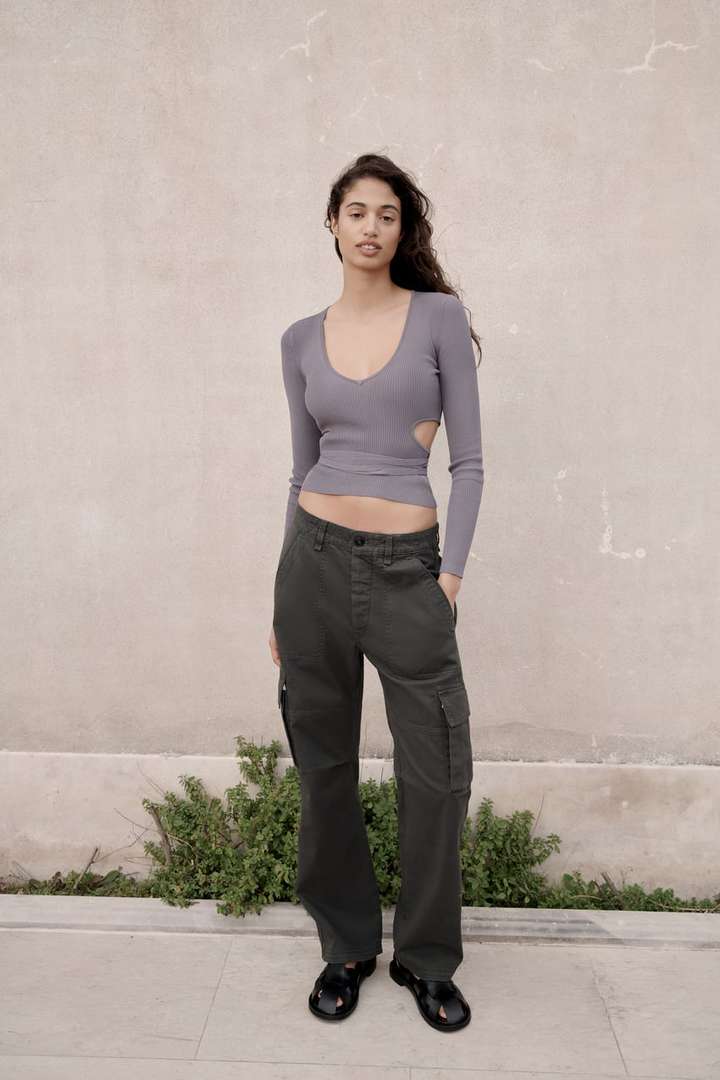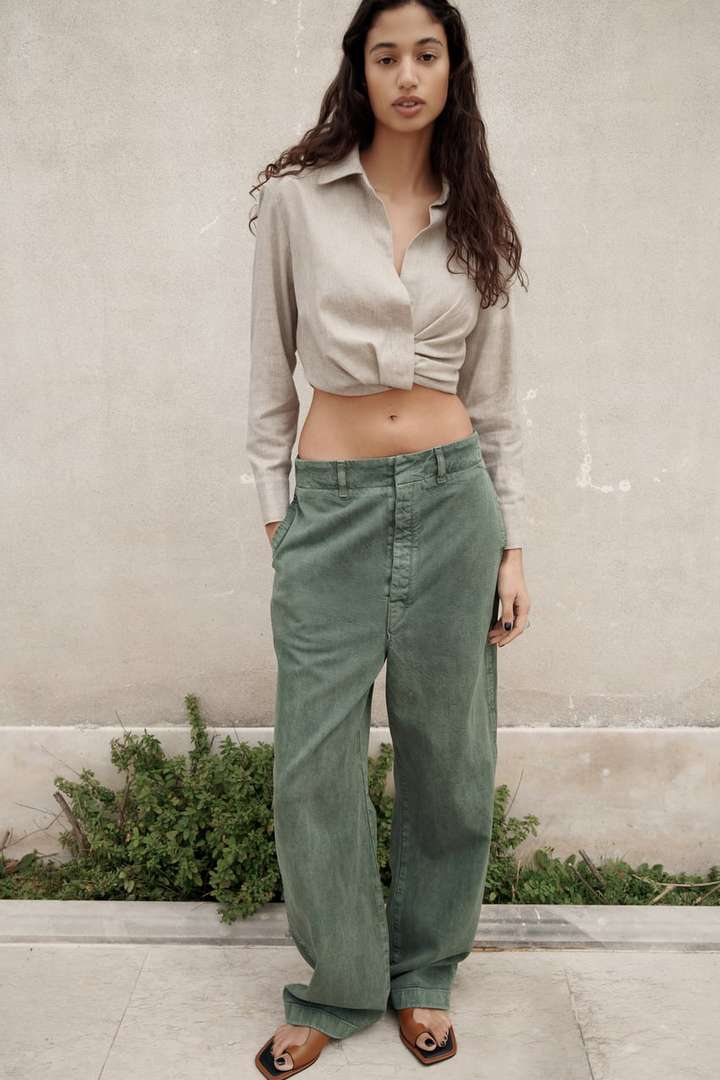 Il pantalone che tende a scoprire la pancia e a regalare un effetto baggy.