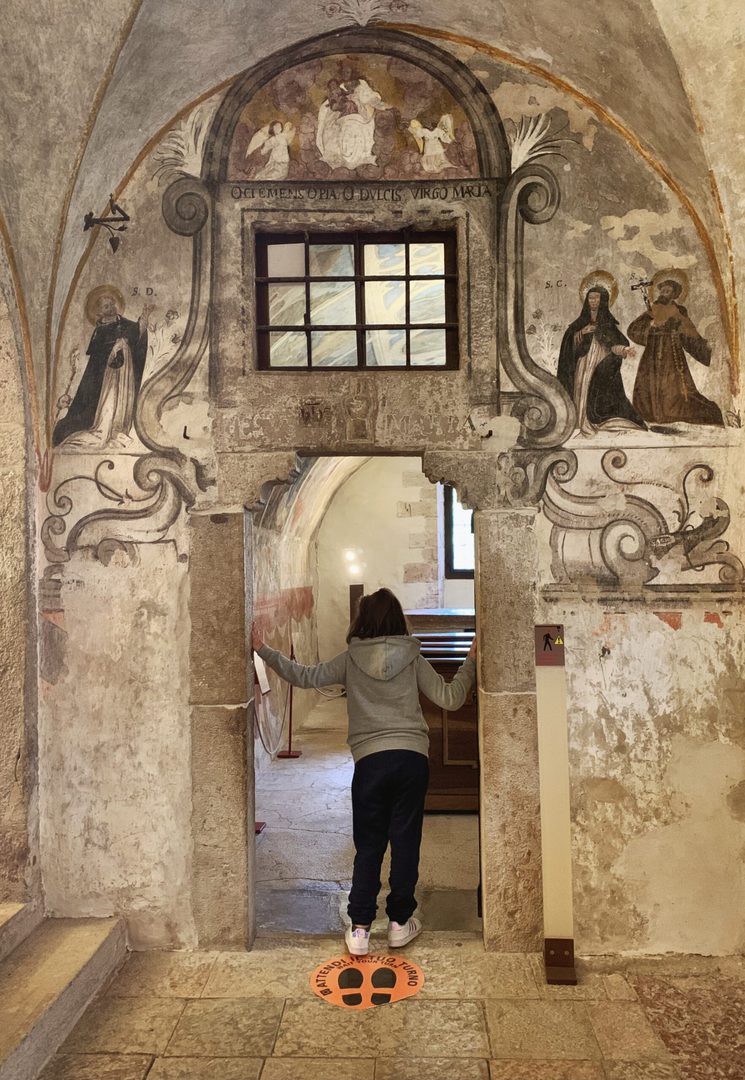 L’ambiente più famoso è la secentesca Stanza del Vescovo, interamente rivestita di legno di cirmolo, con soffitto a cassettoni e stufa in maiolica.