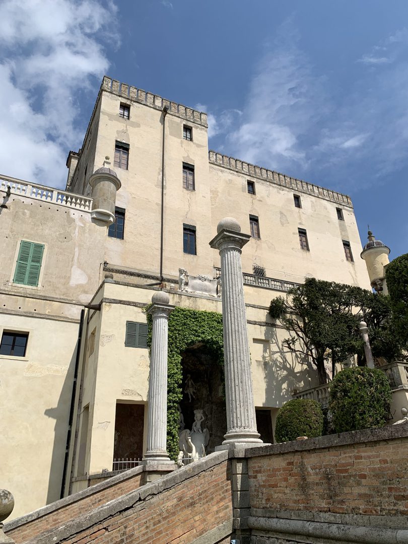 L’accesso al Castello inizia con un lungo viale che vede sulla sinistra il giardino delle delizie e sulla destra la residenza.