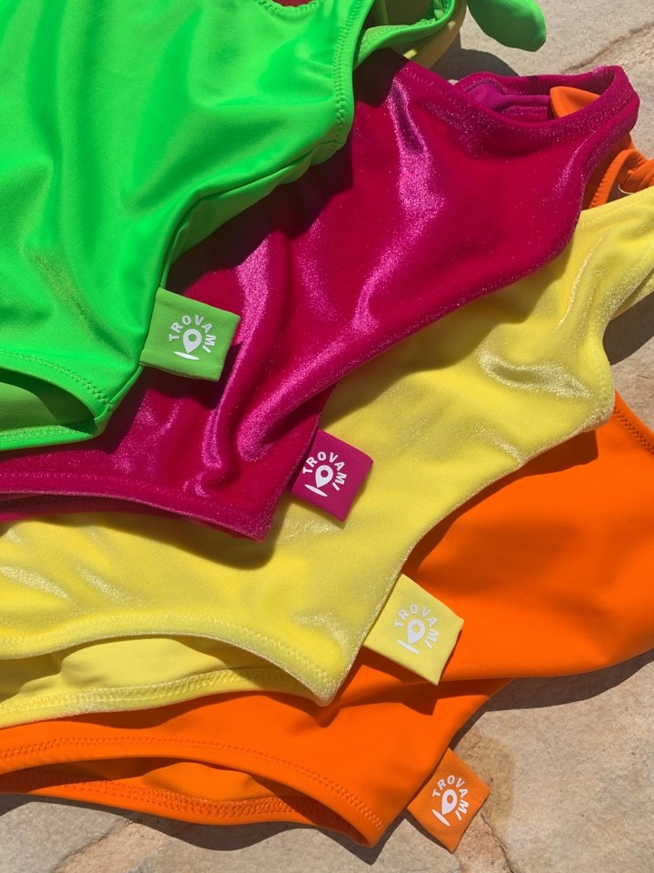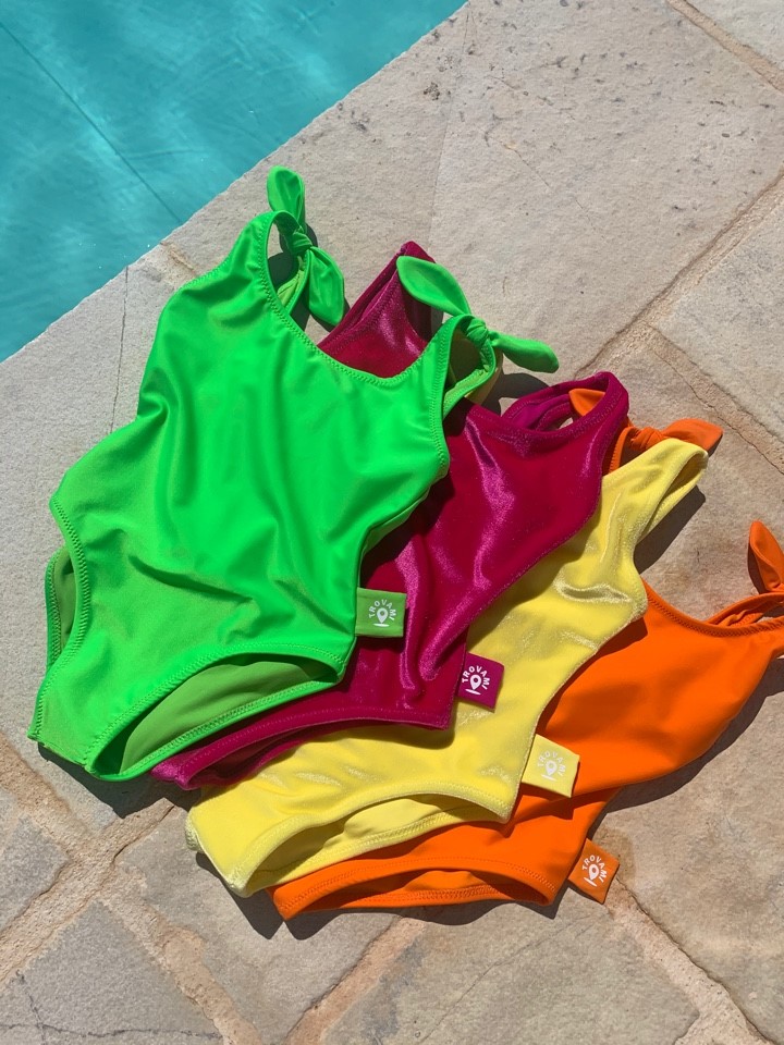 Costumi Mermazing in tessuto Carvico: glamour e sostenibili per la mamma, con la tecnologia “trovami” per i bimbi