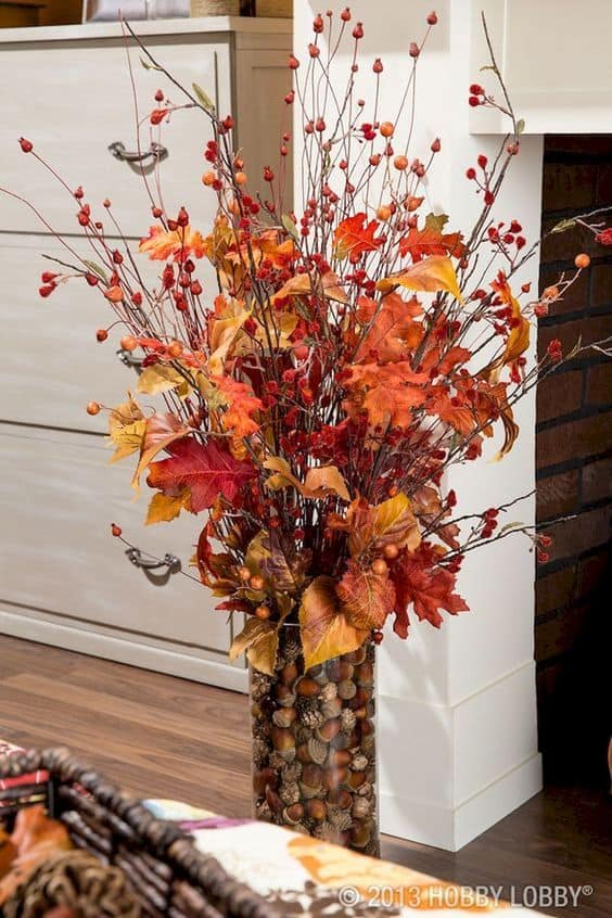 Restando nel mondo naturale, le foglie colorate sono il simbolo per eccellenza dell’arrivo dell’autunno. Potete raccoglierne un po’ e farne un semplice bouquet variopinto, da inserire in un bel vaso – se è di vetro trasparente, si può nascondere la base delle foglie con qualche castagna, ghianda o piccole pigne:
