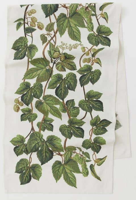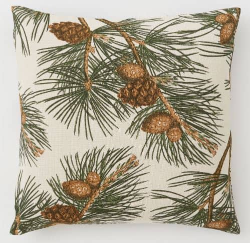Quindi, perché non aggiungere un cuscino dal pattern aghi e pigne, e sul tavolo da pranzo un runner con foglie di vite? (Ph: H&M Home)