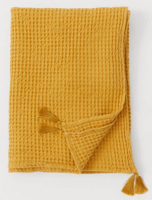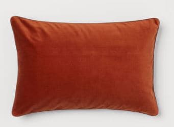 Un bel cuscino ruggine e un plaid color senape vestiranno d’autunno il tuo divano. (Ph: H&M Home)