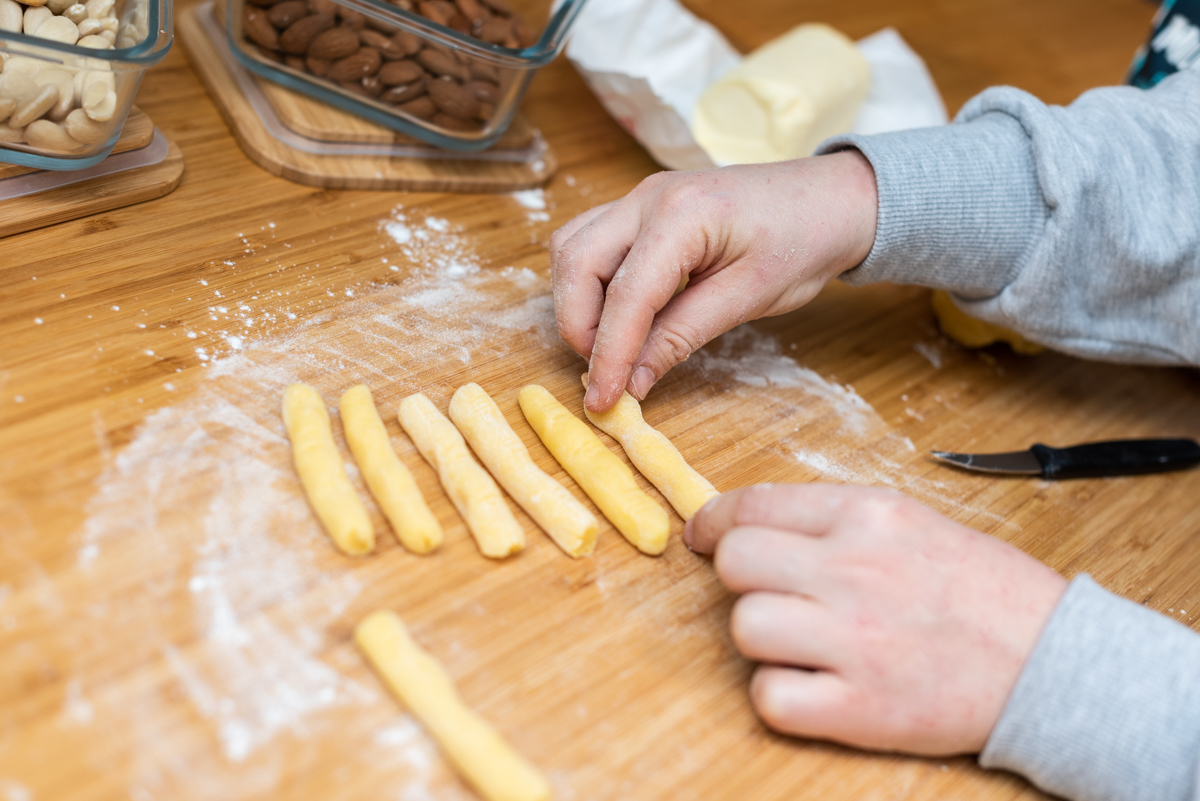 Lasciamo riposare per 20 minuti in frigorifero. Ora siamo pronti per dare forma alle nostra dita di strega.