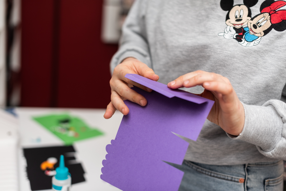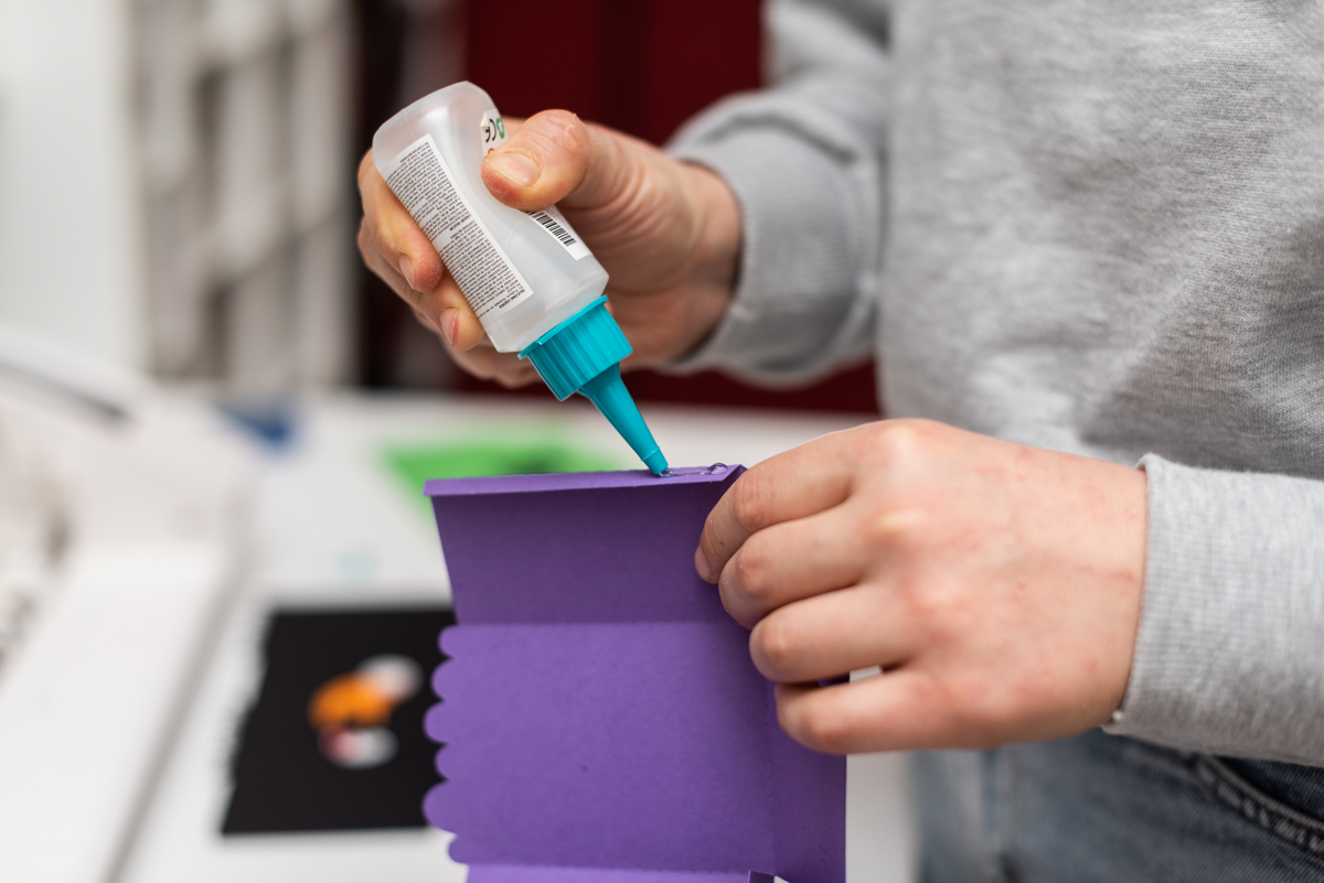 Incollate con la colla o con il nastro adesivo le parti segnate sul pdf.
