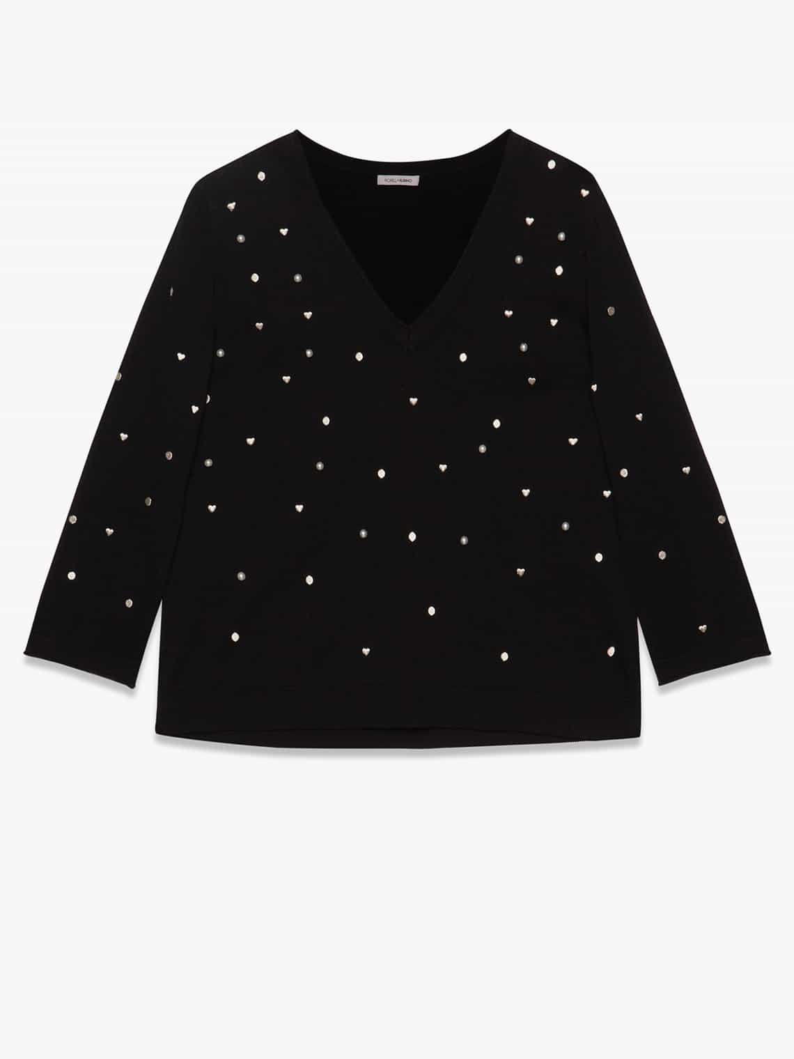 Maglie, maglioni e bluse si lasciano ricoprire da micro e maxi sfere, a coronare con un tocco di bon ton dei look ideali anche per il giorno. L‘abbinamento dei capi con perle dev’essere sempre ricondotto al mix di diverse texture e forme, per raccontare la propria anima glam-rock senza strafare.