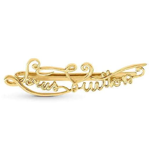 Fermaglio per capelli My LV Affair: in metallo dorato brillante, la lussuosa creazione presenta la nuova iconica firma Louis Vuitton.