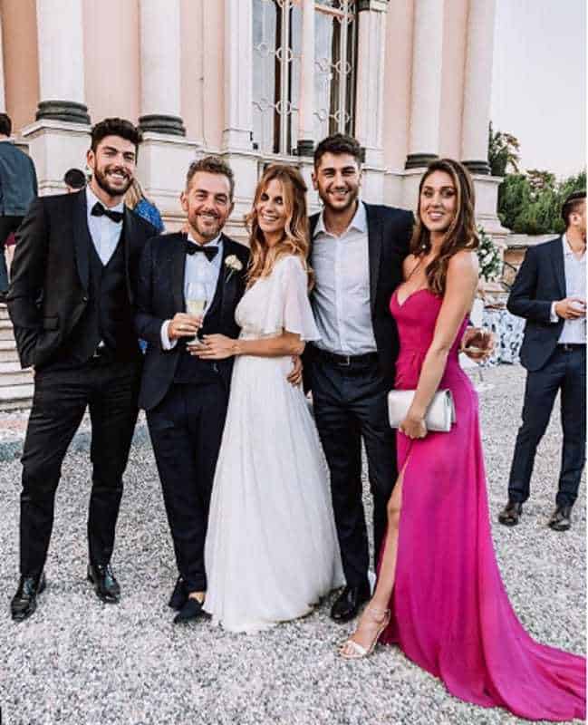 Insieme a Stella, i testimoni: Barbara Snellenburg e Monica Schlösser per la sposa, Lorenzo Flaherty—conosciuto nella casa del GF—e l’amico d’infanzia Giuseppe, per Daniele.