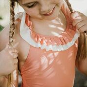 La collezione Summer 2020 comprende bikini, costumi interi, pantaloncini e magliette protettive dai colori sia pastello che accesi. Menta e pesca sono accostati ad ottanio e corallo, creano nuance chic e divertenti. Il tutto arricchito da dettagli come i volants per le bambine e stampe in fantasia per i bambini.