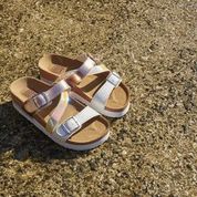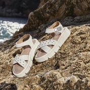 La linea più elegante spicca nei sandaletti dai colori soft mescolati con i toni dell’oro, dell’argento e del rame. Non mancano però dei modelli boho che racchiudono diverse stampe animalier con tocchi metallici e glitter.