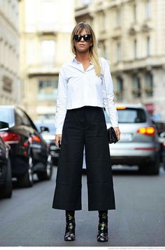 I pantaloni cropped si sposano molto bene con stivaletti o scarpe con lacci che si annodano alla caviglia. Ii culotte, invece, sono un vero must con sneakers o chunky shoes.