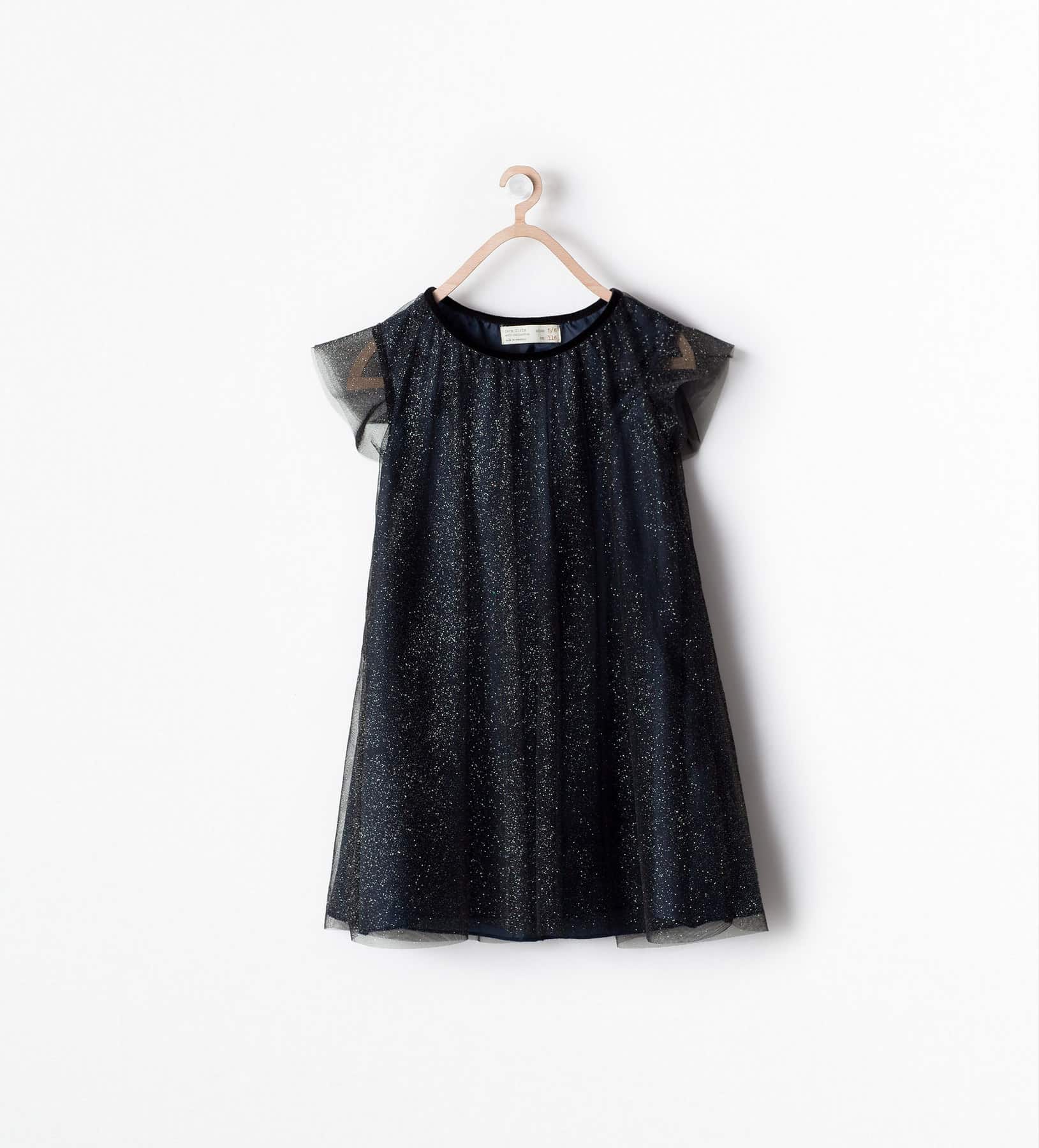 Cominciamo da Zara: per le baby-girl un vestito in velluto blu scintillante con delle scarpine altrettanto sbrilluccicose… se temete che la vostra bebรจ abbia freddo, potete aggiungere un body a manica lunga a colore sotto, oppure (io lo preferisco)ย un coprispalle, magari in lurex dorato.