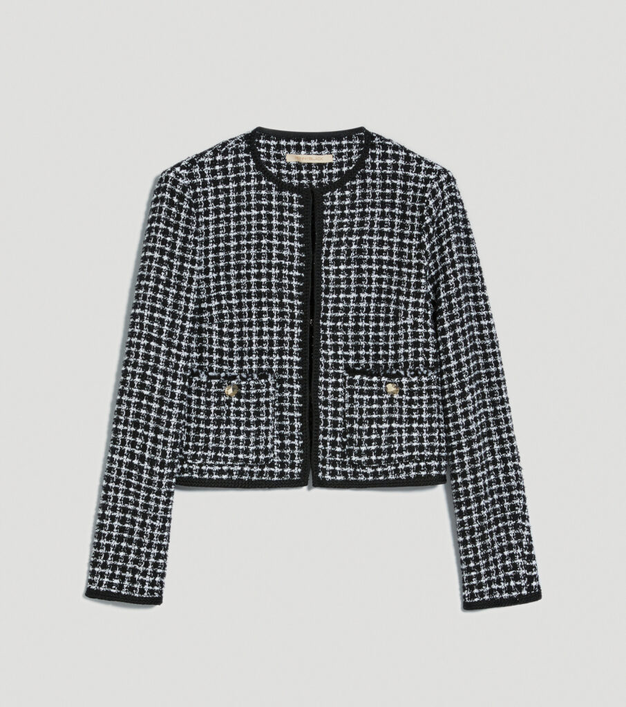 La giacca in tweed è pefetta per outfit bon ton con gonne, abiti o pantaloni, ma anche sdrammatizzata con jeans e stivali.