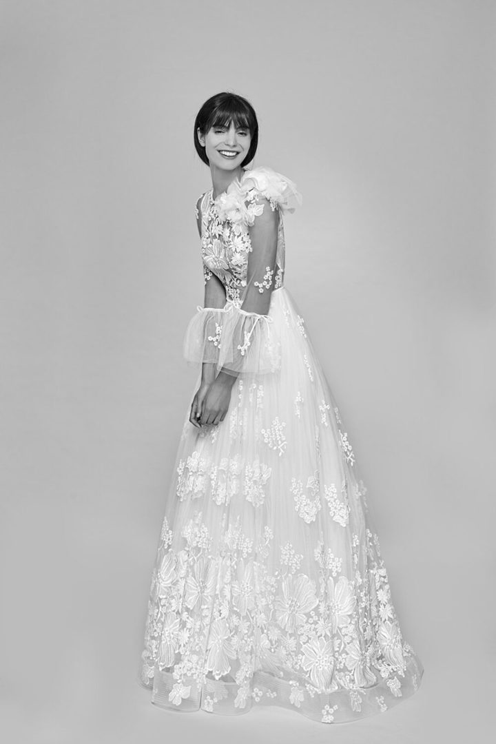 La collezione timeless 2021 si anima con sperimentazioni eclettiche: l’alta moda degli anni 50 è celebrata dal faille che diventa ecosostenibile. A questo si uniscono la sofisticata charmeuse e i piquet jaquard. Le organze ricamate con macro fiori e il tulle plissè si ispirano alla couture anni 70 e vanno ad impreziosire abiti dai volumi ampi.