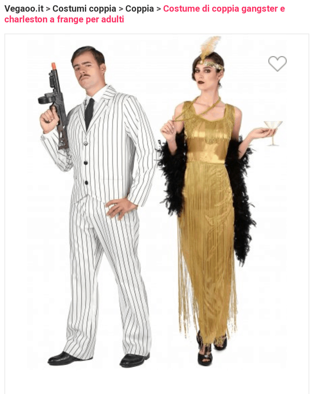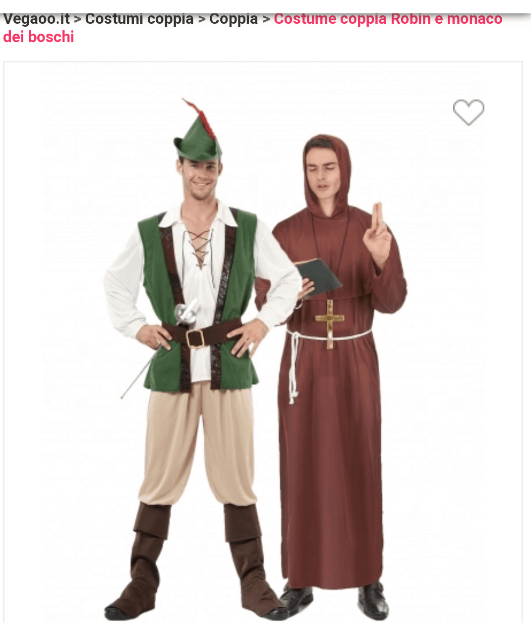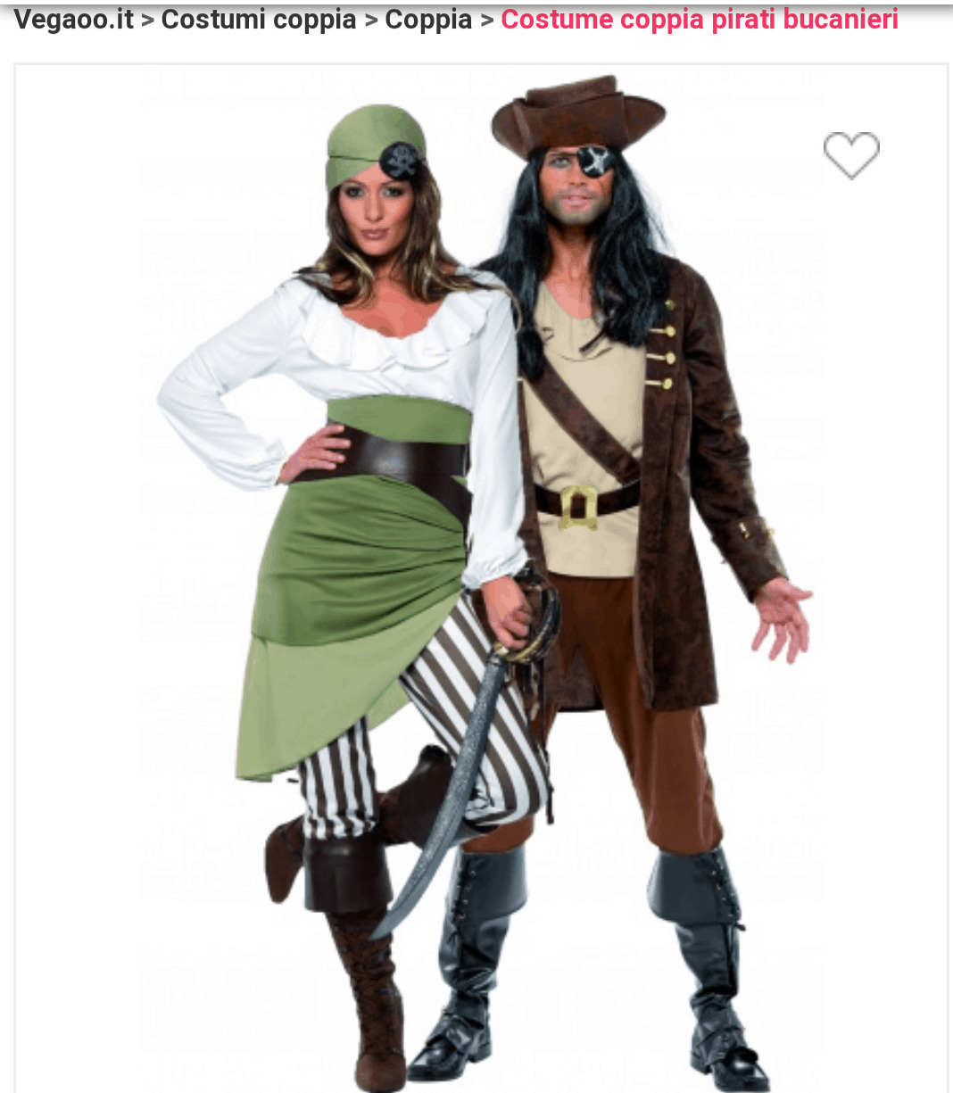 Nella homepage si trovano i costumi divisi per categorie; oltre alle solite (donne, uomini, bambini….), troviamo anche voci più particolari come “coppie” e “feste a tema”.