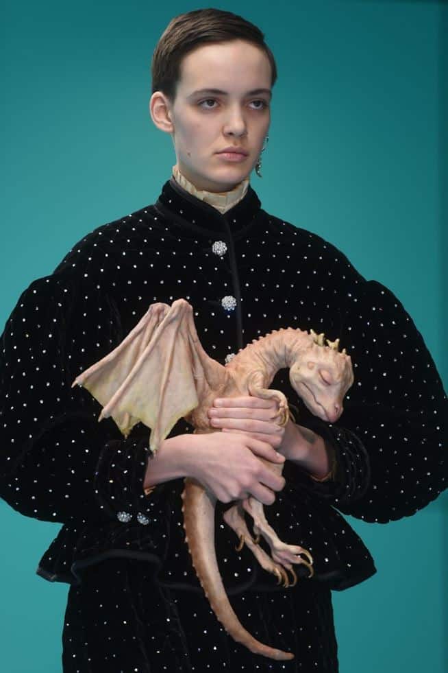 Nella seconda giornata della Milano Fashion Week, Gucci ha travolto e stravolto con la sua sfilata postmoderna sul tema del doppio e dei draghi. Il direttore creativo, Alessandro Michele ha messo in scena una sfilata dall’alto tasso creativo.