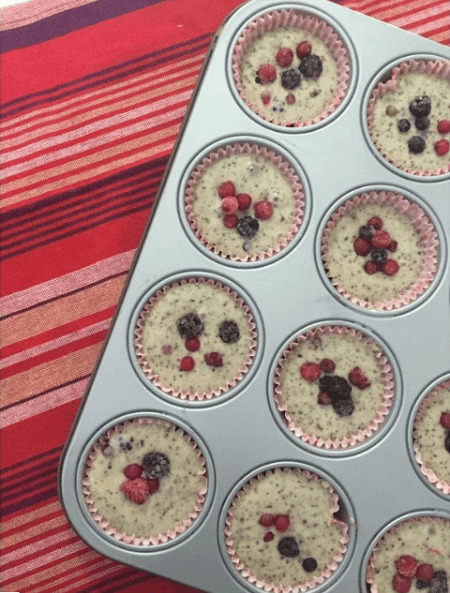 Ingredienti x 12 Muffin al cioccolato e frutti di bosco