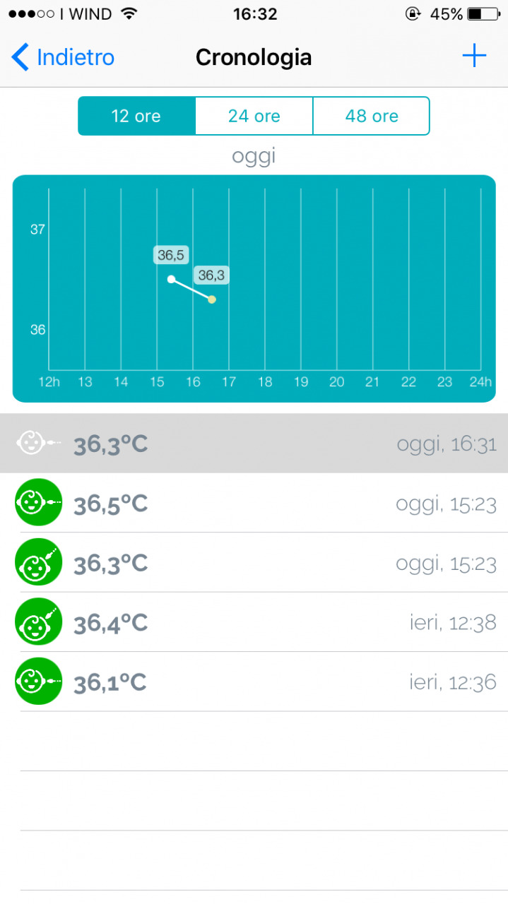 Le misurazioni registrate nello storico, possono essere anche condivise, per esempio su Whatsapp o tramite mail con il pediatra o il dottore.