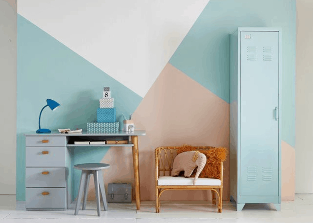 Per realizzare pareti con disegni geometrici, occorre saper mixare i giusti colori senza eccedere e soprattutto scegliere disegni rilassanti. Da escludere quindi i triangoli con la punta rivolta verso l’alto in quanto creano tensione emotiva.
