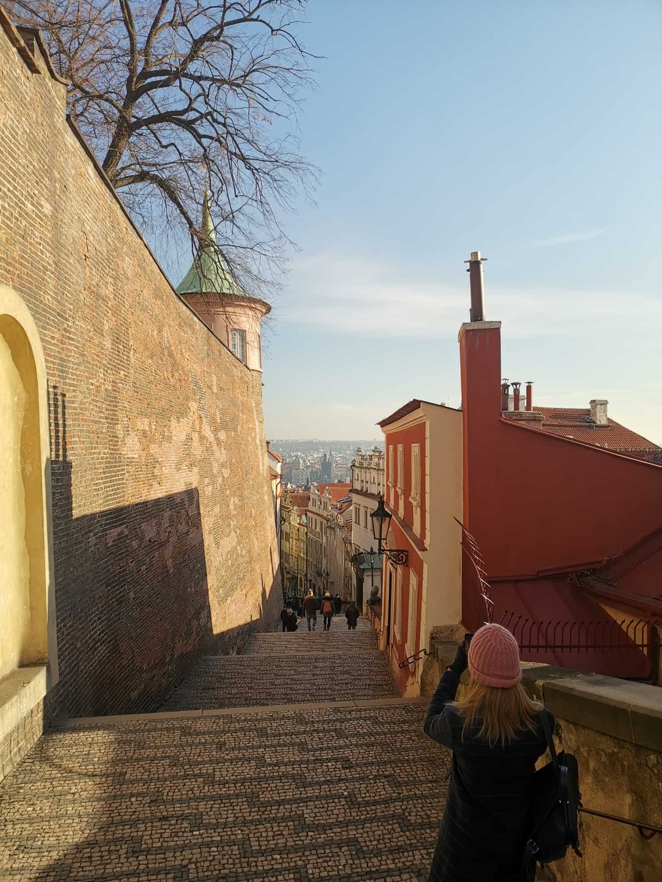 Arrivati al Castello di Praga vi consiglio di prendervi un momento di pausa. Se le condizioni atmosferiche sono dalla vostra, sedetevi sugli scalini alla fine della scalinata principale e godetevi la vista. Questo momento potrebbe essere accompagnato dalle note di un clarinetto o da una meravigliosa voce solista degli artisti di strada che popolano questโarea.