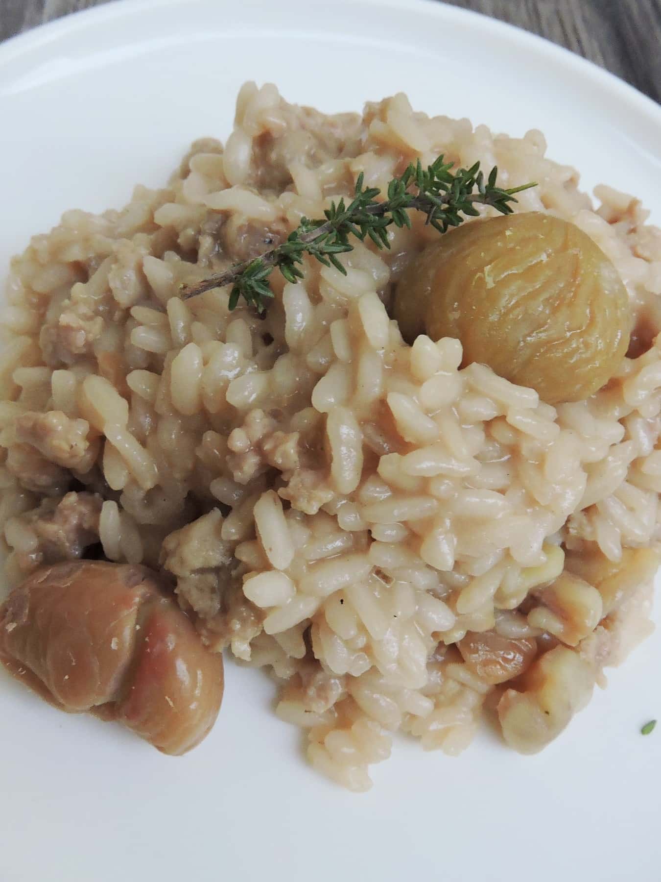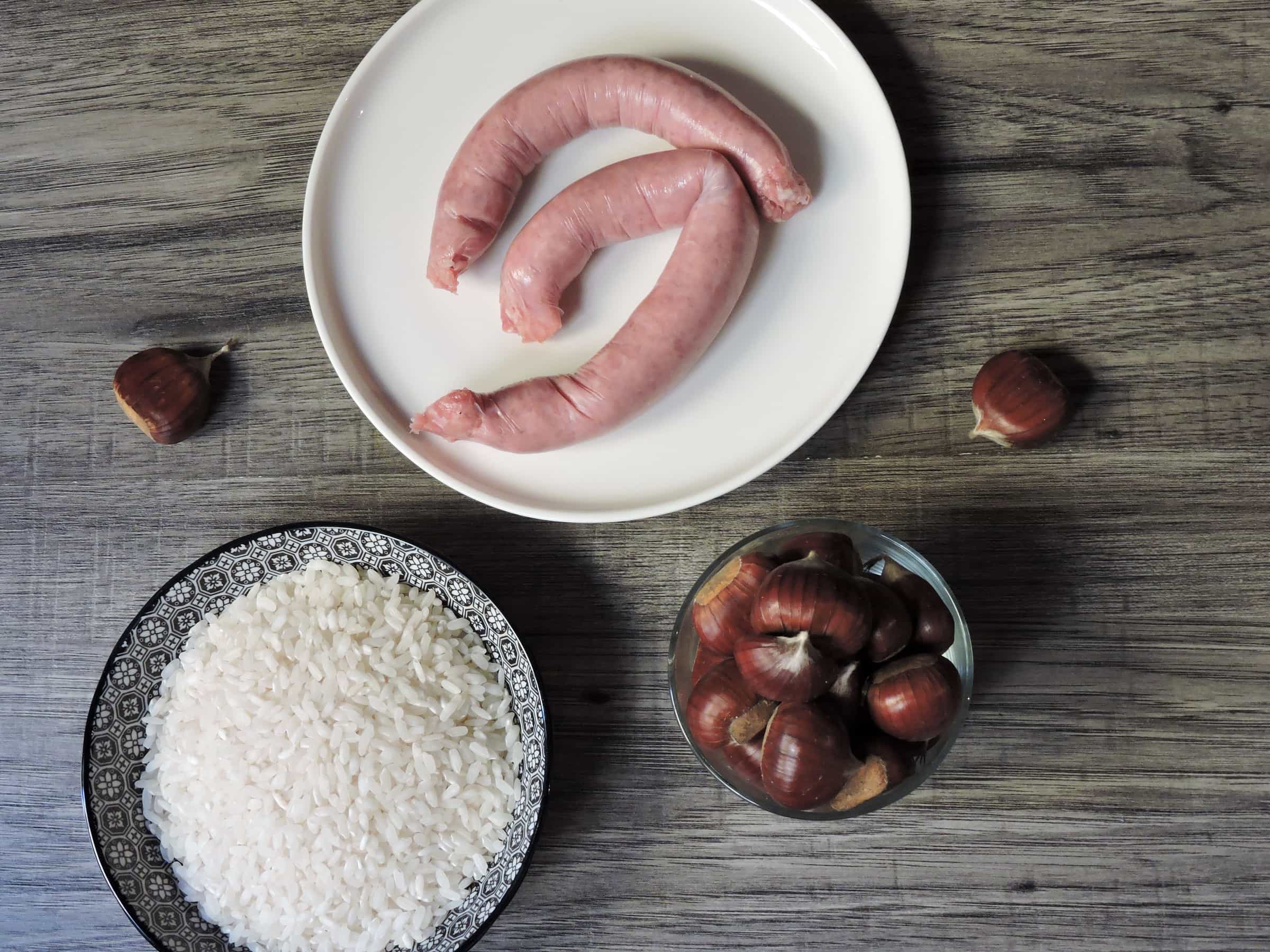 Ingredienti per il risotto salsiccia e castagne (per 2 persone):