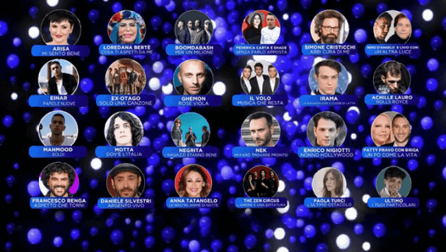 Altra novità della 69esima edizione è la gara unica che vedrà sfidarsi i big della musica italiana con i vincitori di Sanremo Giovani, Einar e Mahmood. I 22 big annunciati durante le prime serate condotte da Pippo Baudo e Rovazzi sono: Paola Turci, Anna Tatangelo, Loredana Bertè, Motta, Ultimo, Simone Cristicchi, The Zen Circus, Irama, Ghemon, Il Volo, Federica Carta e Shade, Patty Pravo e Briga, Negrita, Daniele Silvestri, Ex-Otago, Achille Lauro, Arisa, Boomdabash, Francesco Renga, Enrico Nigiotti, Nino D’Angelo e Livio Cori.