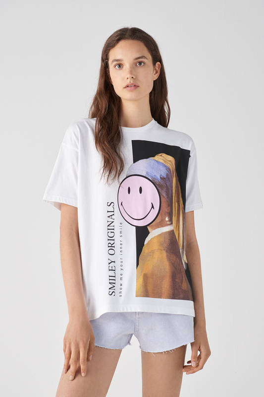 La capsule collection Smiley x Pull&Bear comprende capi donna, uomo e accessori. T-shirt, jeans, orecchini, borse e molto altro.