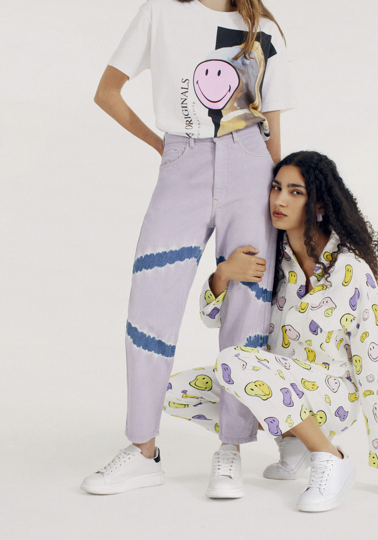 Riferimenti alle opere classiche sono mixati con stile, in uno spirito assolutamente pop dominato dai colori pastello e toni al neon. Questi i tratti disirintivi della collezione Smiley x Pull&Bear.