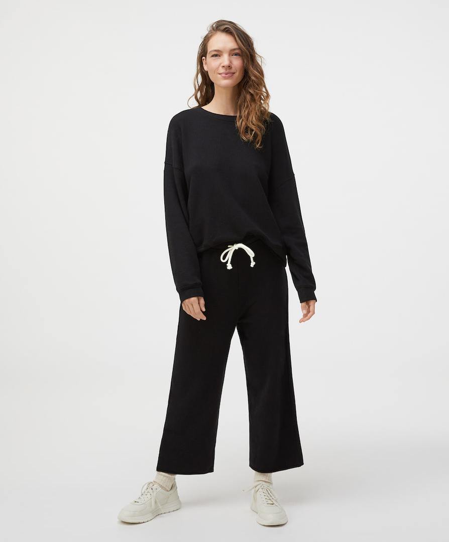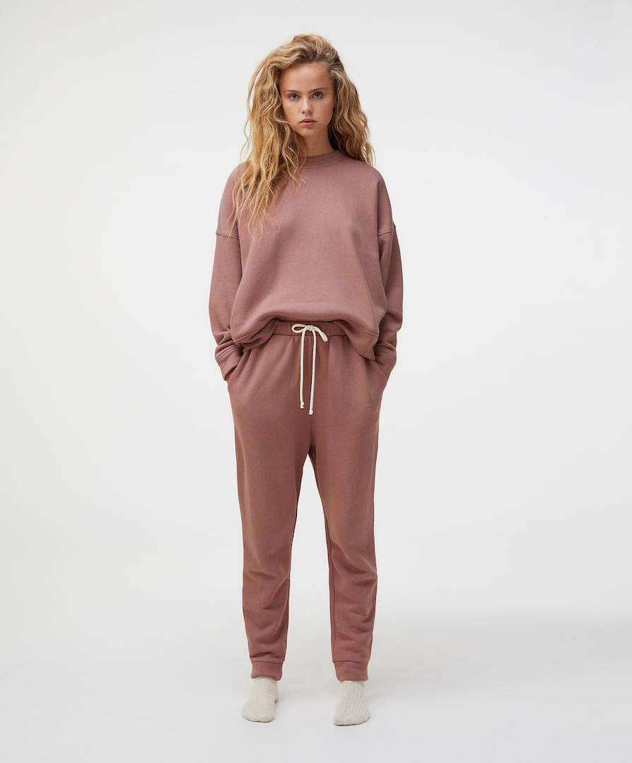 Pantaloni, felpe e leggings in nuance naturali e colori pastello. Materiali come il cotone organico uniti a tessuti tecnologici di utlima generazione.