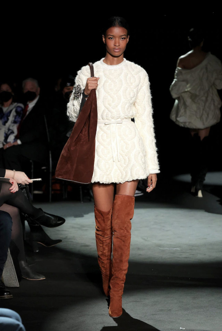 Potete indossare i vostri stivali cuissard anche con un vestito dalla lunghezza midi, magari a fantasia e un bel cardigan a trecce super caldo.