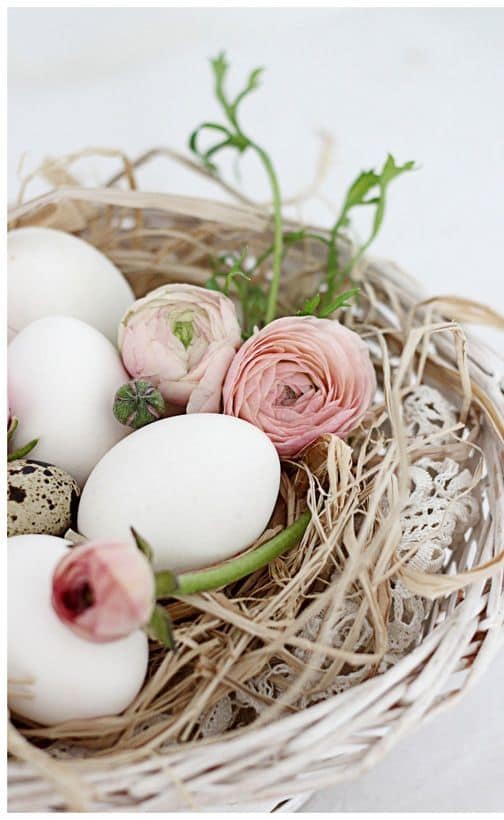 Oppure potete scegliere di utilizzare le uova svuotate del loro interno e dipinte nei delicati colori pastello; decisamente meravigliose sono le sfumature che potete scegliere di creare e di utilizzare; la mescolanza dei colori sarà di grande effetto.